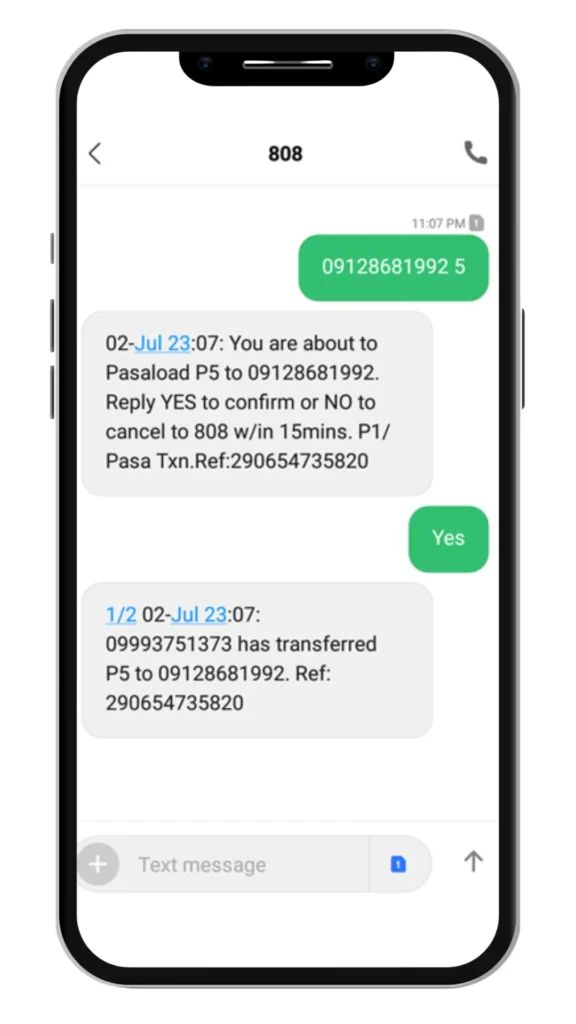 To send Pasaload on Smart or TNT, send a text in this format to 808: PASALOAD. You can also transfer load using the Smart GigaLife App by selecting the Pasa / Share Load option.